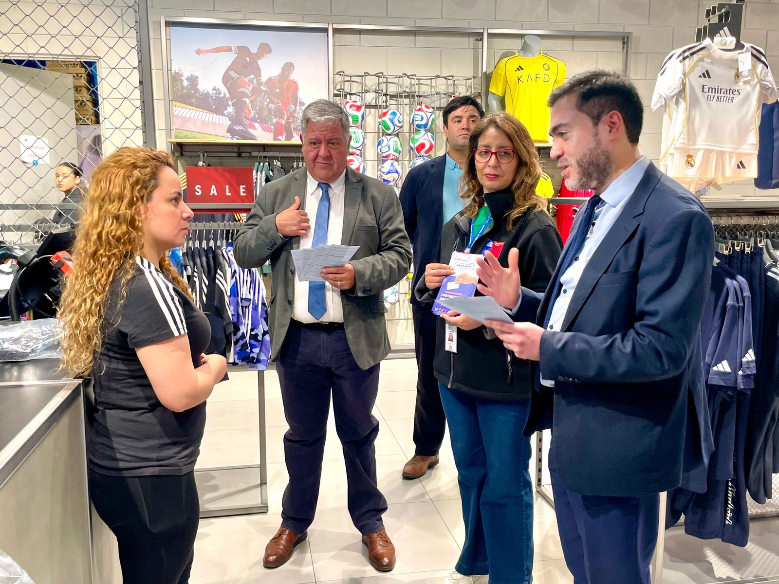 Las autoridades recorrieron diversos locales del centro comercial para difundir entre trabajadores, trabajadoras y locatarios la normativa vigente que aplicará durante el proceso electoral del 16 de noviembre, reforzando el carácter de feriado obligatorio e irrenunciable para quienes laboran en malls y strip centers administrados bajo una misma razón social.