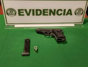 1 pistola a fogueo con 5 municiones, y 1 teléfono celular.